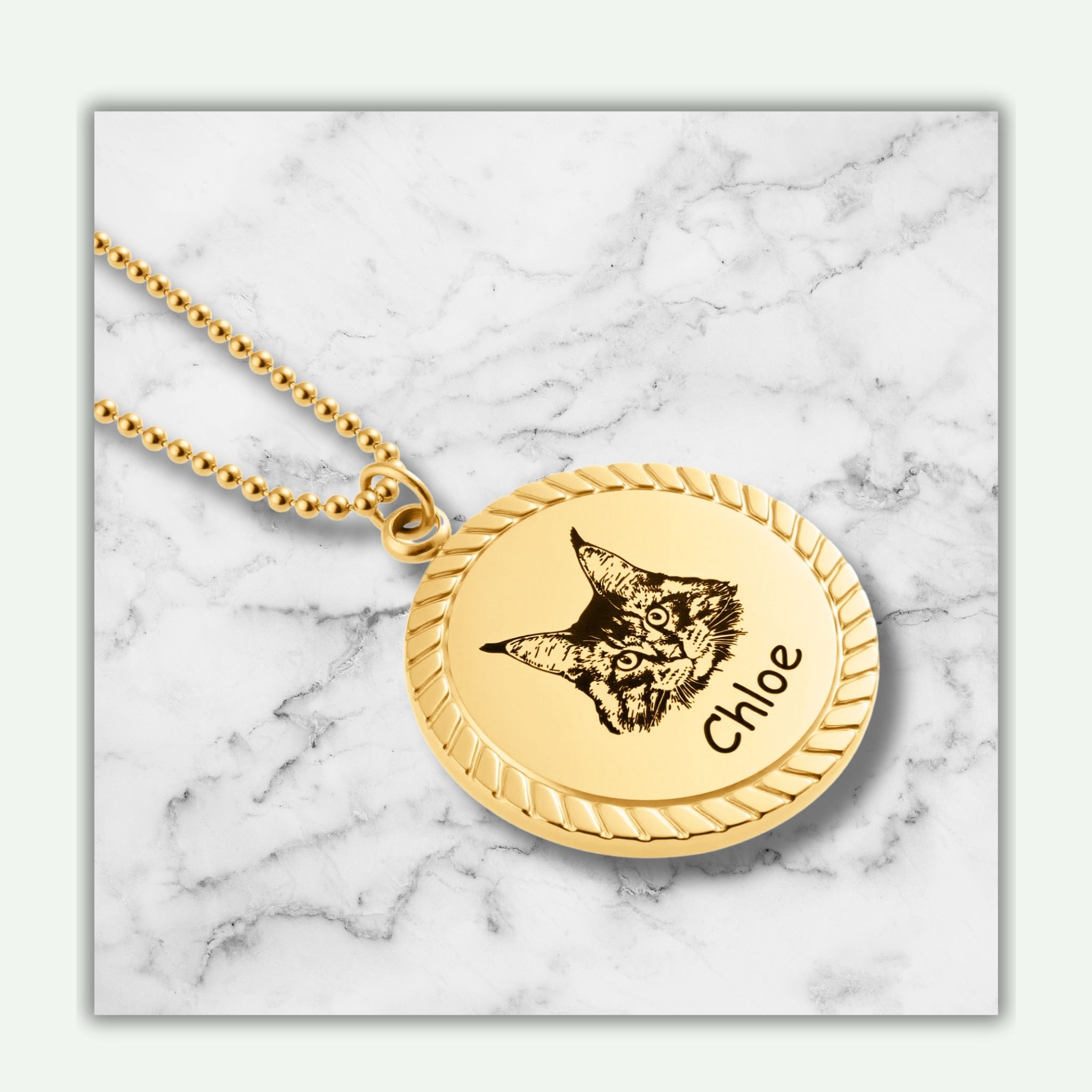 Cat Photo Rope-Edge Pendant Necklace – Custom Engraved