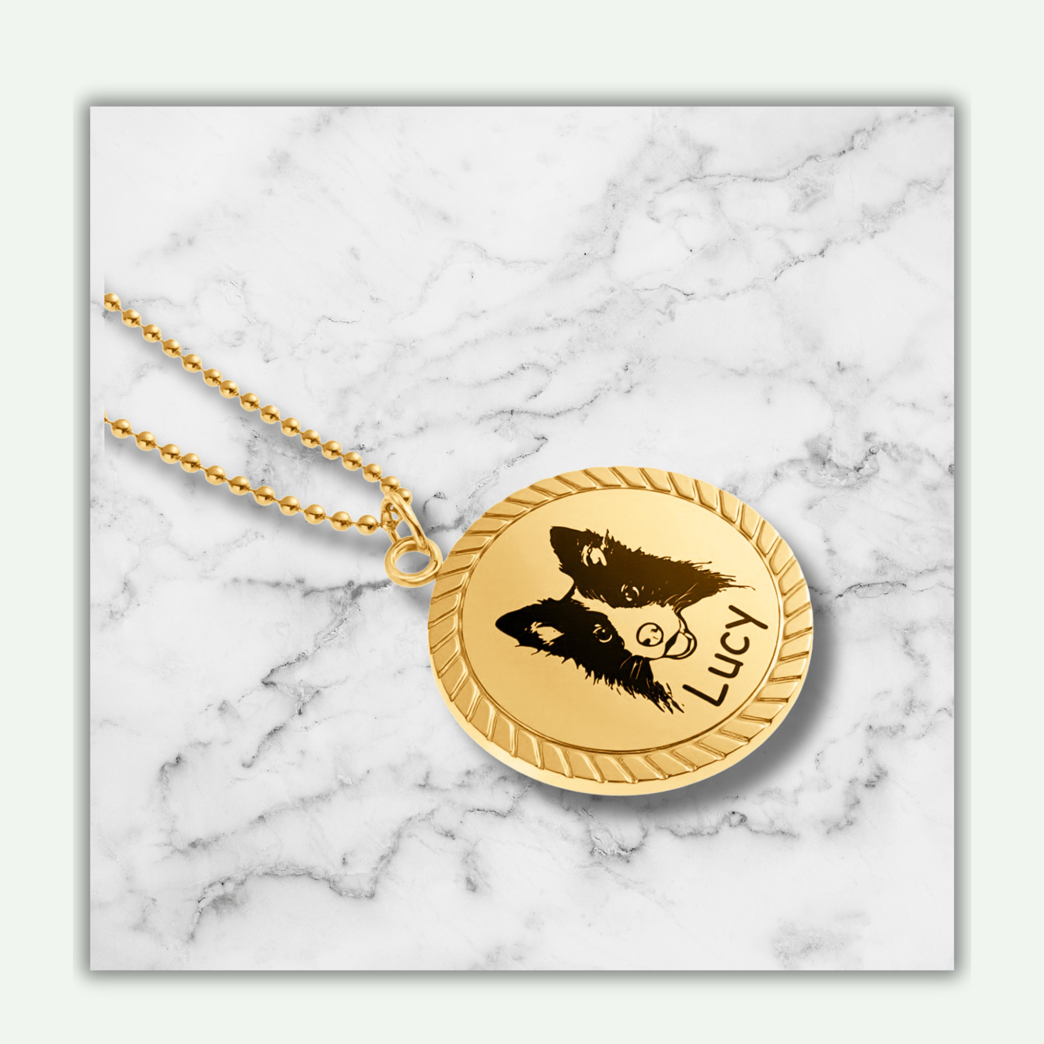Turn your best friend’s photo into a photo-real engraving on a dog photo rope-edge pendant necklace. We capture fur, eyes, and markings—personalized with name/date. A keepsake gift or memorial you can wear every day.