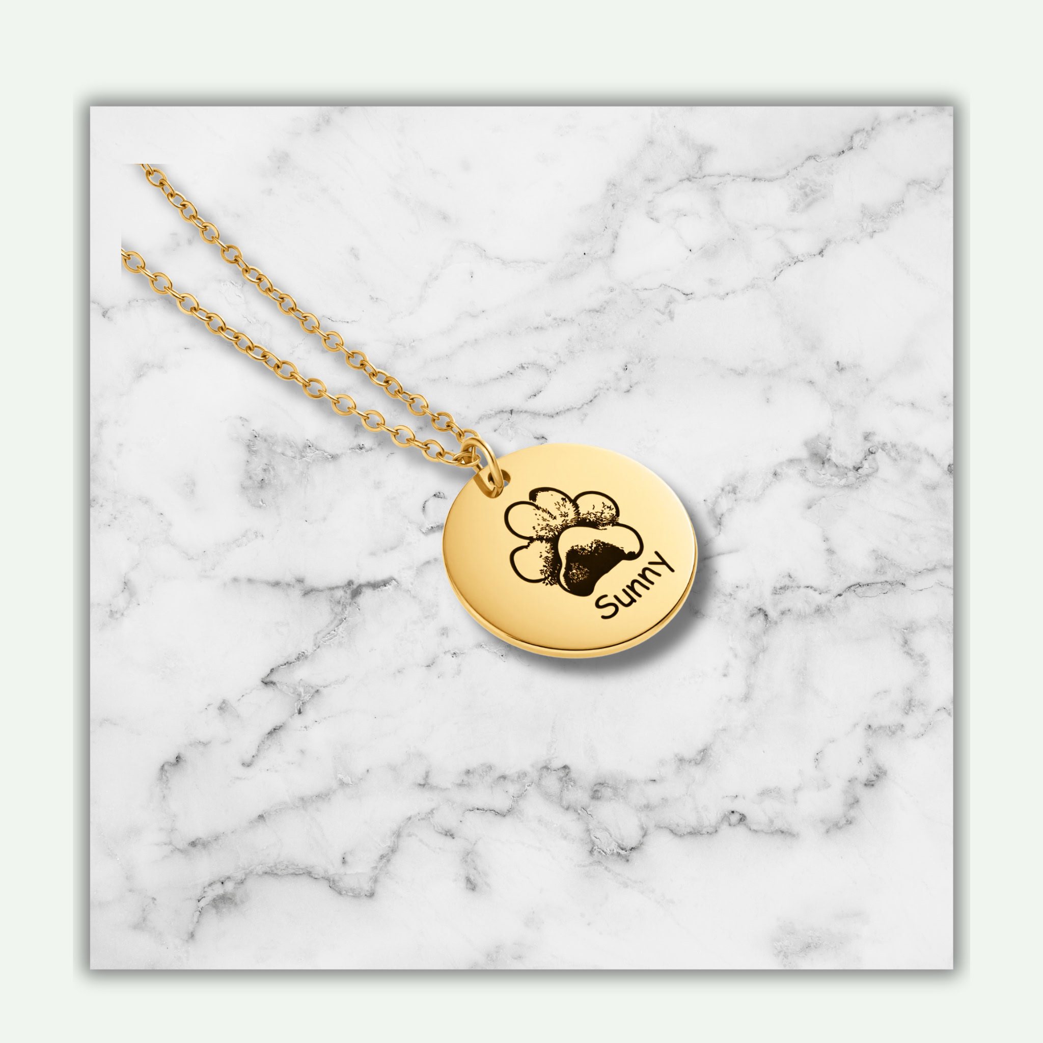Paw Print Photo Disc Pendant Necklace – Custom Engraved